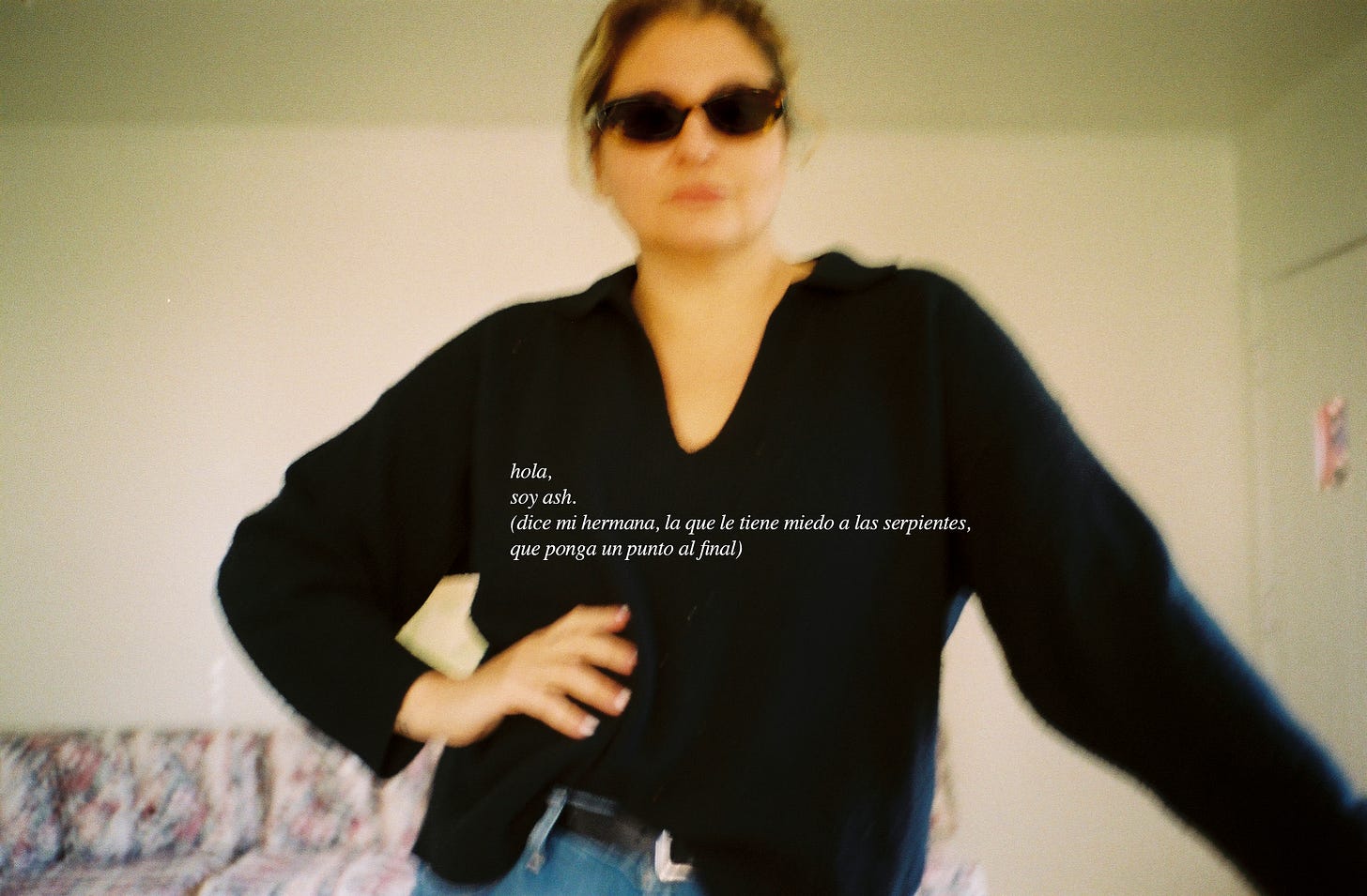 Hola, soy Ash, mexicana. La casa tapatía en la que crecí estaba construida de agua de jamaica, quesadillas y kibbe bola. Fui una niña independiente y preguntona. Siempre me importó sentirme libre y he odiado usar ropa desde que nací. Soy ½ de Se Regalan Dudas. Amo la vida, el mar y la buena música.